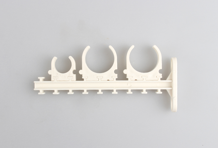 2、單個(gè)家裝組合式吊卡可固定68PP-R管或電工套管。吊卡槽等距離分布于吊卡座上,使安裝好的管道也等距離分布,安裝效果更加整齊、美觀。